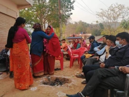 गुल्मीदरबार गाउपालिका वडा नम्बर ७ चारपालामा श्रीमानको मृत्यु भएको १२ औ दिनमा सासु बालकुमारी खत्रीले बुहारी बिष्णु खत्रीलाइ रातो दोसल्ला र रातो सारि लगाइदिनुभएको छ ।