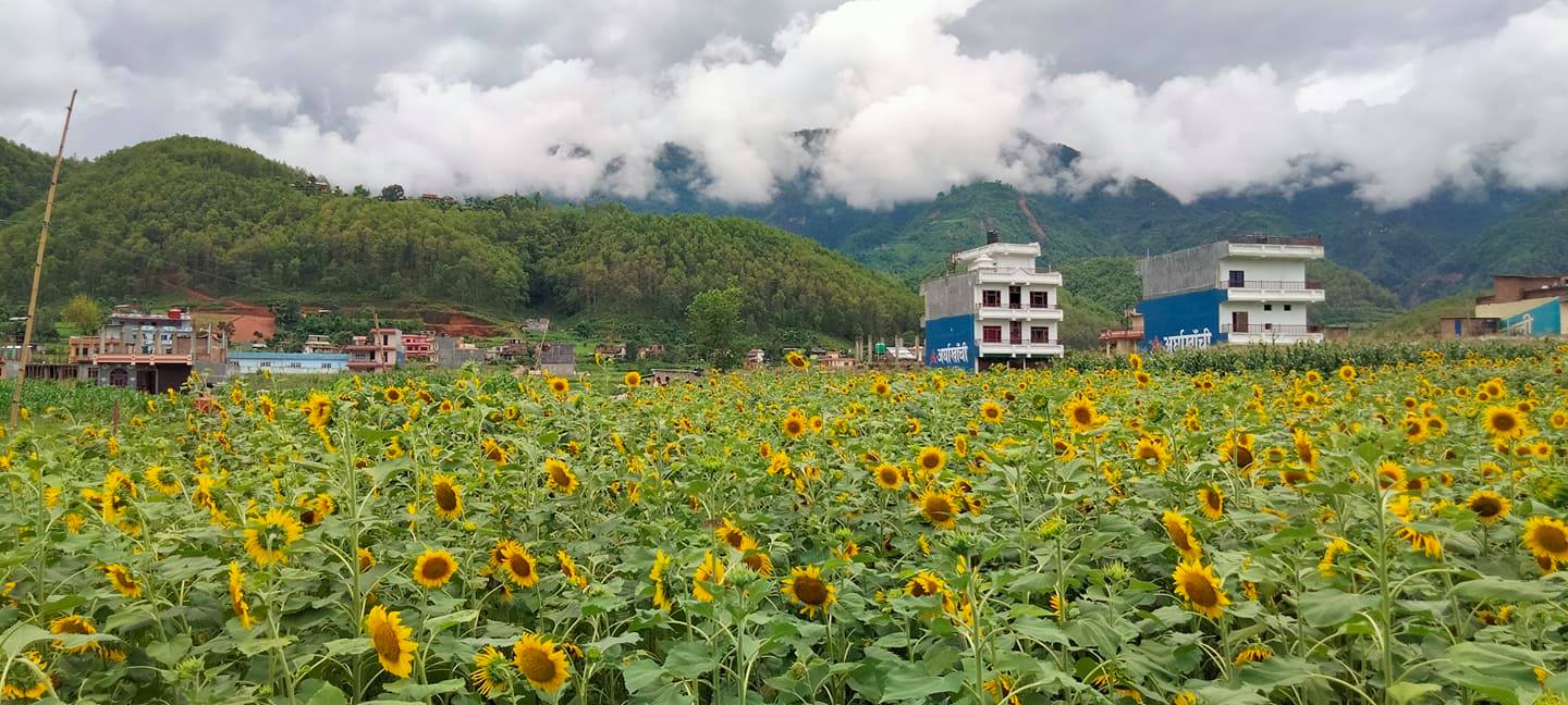 पाल्पा । एक वडा एक उत्पादनमा तेलहन बालीलाई जोड दिएको रामपुर नगरपालिका वडा नम्बर ५ ले लगाएको सुर्यमुखी फुलले अहिले रामपुरको फाट ढकमक्क बनाएको छ ।