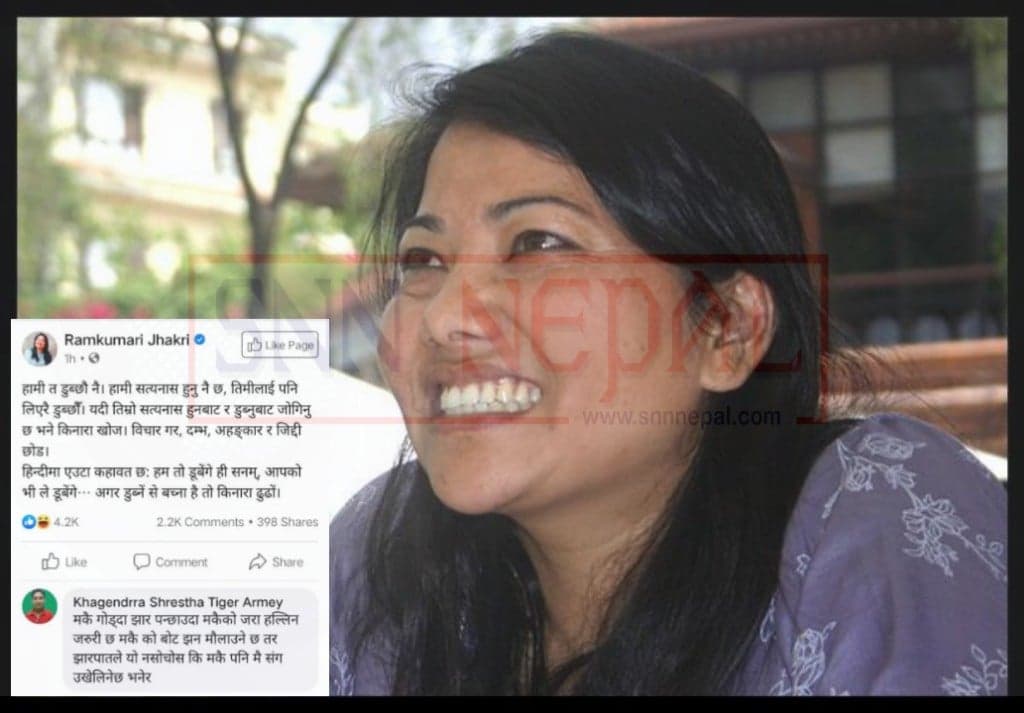 आफू सकिए पछि ओलिलाइ पनि सिद्दाउछु भन्ने मानसिकता राख्ने र दिउसो सपना देख्ने रामकुमारी झाक्रीलाई उनको यो जबाफले कडा शब्दमा कडा प्रहार गरेको छ ।