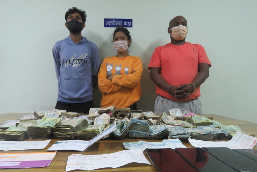विराटनगर महानगरपालिका–११ स्थित रोगशेष चोकमा चेकजाँच गर्दा २५ वर्षीय श्रवणको साथमा २१ लाख ७१ हजार नगद फेला परेको जिल्ला प्रहरी कार्यालय मोरङले जनाएको छ । श्रवणको बयानका आधारमा पक्राउ गरिएकी २५ वर्षीय जिज्ञासाको साथमा २३ हजार भारतीय रुपैयाँ फेला परेको छ ।