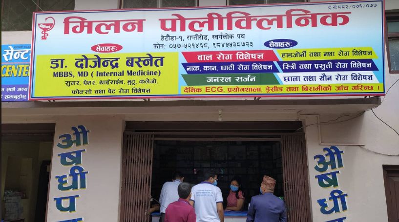 जिल्लामा कोरोना संक्रमणको दर बढ्दै गएपछि हेटौंडा अस्पताललाई कोभिड अस्पतालका रुपमा सञ्चालन गरिँदै आएको छ । सरकारी सेवा सुविधा बुझ्ने हेटौंडा अस्पतालका उच्च दर्जाका यी डाक्टरहरु कोरोना नियन्त्रण तथा संक्रमितको उपचारमा खासै चासो नदेखाउने आरोप लाग्दै आएको छ । यता, उक्त पोलिक्लिनिक हालसम्म कुनैपनि सरकारी निकायमा दर्ता नै नभएको जिल्ला प्रशासन कार्यालयले जनाएको छ ।