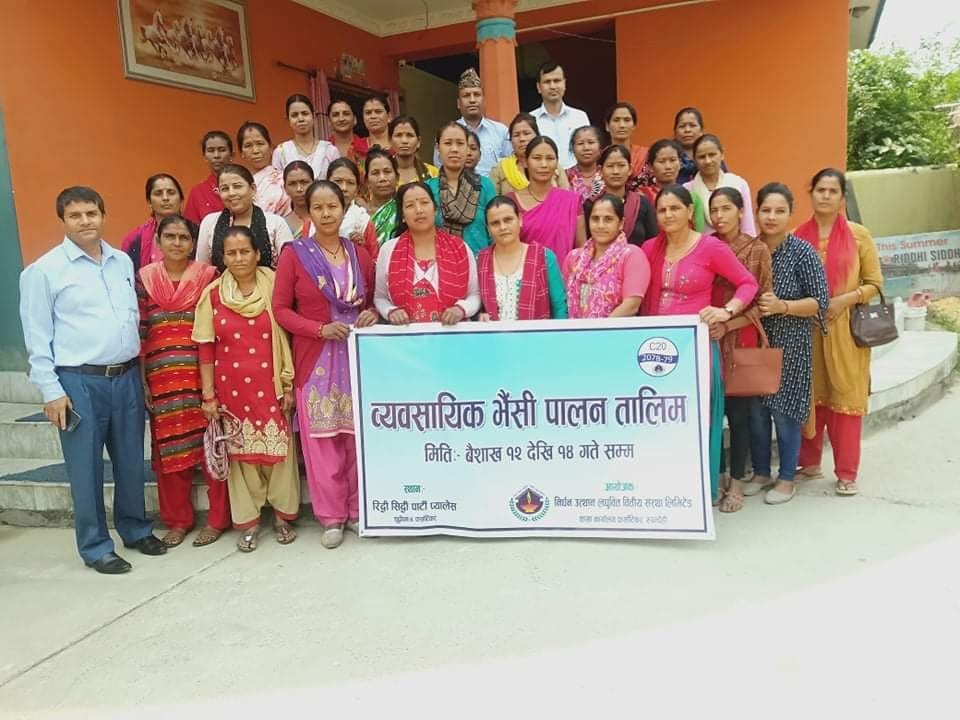 बुटवल ।निर्धन उत्थान लघुबित्त बितिय सस्था फर्साटिकर शाखाद्वारा आयोजना गरेको ३ दिने भैसिपालन तालिम सम्पन्न गरेको छ। शाखा प्रबन्धक कृष्ण थापाको सभापतित्व मा सम्पन्न कार्यक्रम को प्रमुख अतिथि शुद्दोधन गाउपालिका का प्रमुख प्रसासकिय अधिकृत झबिलाल भट्टराई , बिशिस्ट अतिथि निर्धन उत्थान लघुबित्त भैरहवा क्षेत्रीय कार्यालयका प्रमुख शम्भु, तथा अतिथि गाउपालिका पशु बिकास अधिकृत भुमिश्वर खनाल रहनुभएको थियो।कार्यक्रम मा सदस्यलाइ बिमा क्षतिपूर्ति समेत बितरण गरिएको थियो ग्राहक सदस्य जसिकला थापाको मृत्यु पश्चात आज उहाको हकवाला छोरि देवकला थापालाइ रु १० लाख ७८ हजार ८० रुपैया तथा ग्राहक सदस्य मिना कुमालको पति को मृत्यु पश्चात उहाको हकवाला सदस्य मिना कुमाल लाइ रु २८ हजार बितरण गरिएको थियो।