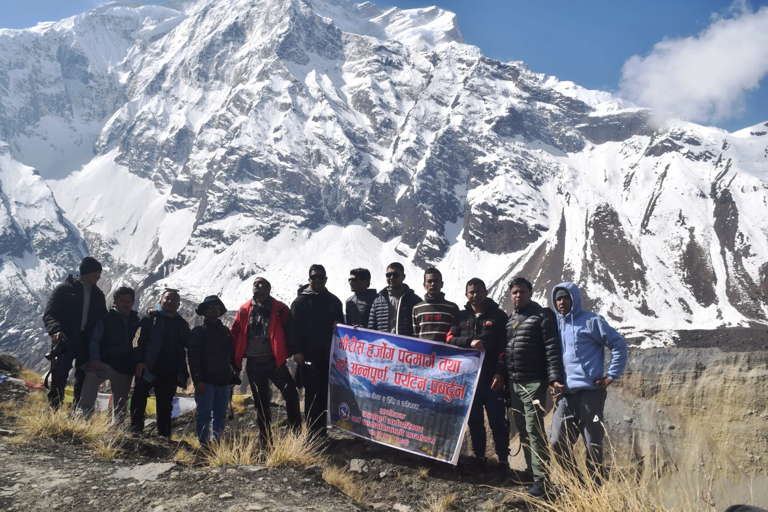 “नर्थ अन्नपूर्णको प्रवर्द्धनमा गाउँपालिकाबाट भएको यो पहिलो प्रयास हो, यहाँ लुकेर रहेको अथाह सम्भावनालाई उजागर गर्न सके यस क्षेत्रमा पर्यटन विकासको मूल फुटाउन सकिन्छ, गाउँपालिकाले समेत यसका लागि आवश्यक योजना तयार गरिरहेको छ”, उनले भने। उक्त टोलीमा सहभागीले गाउँपालिकाले आधार शिविरको चार हजार एक सय मिटरमा आयोजना गरेको मैत्रीपूर्ण एक सय मिटर दौड, छेलो फाल्ने र अन्ध निसान प्रतियोगितामा समेत सहभागिता जनाएका थिए।