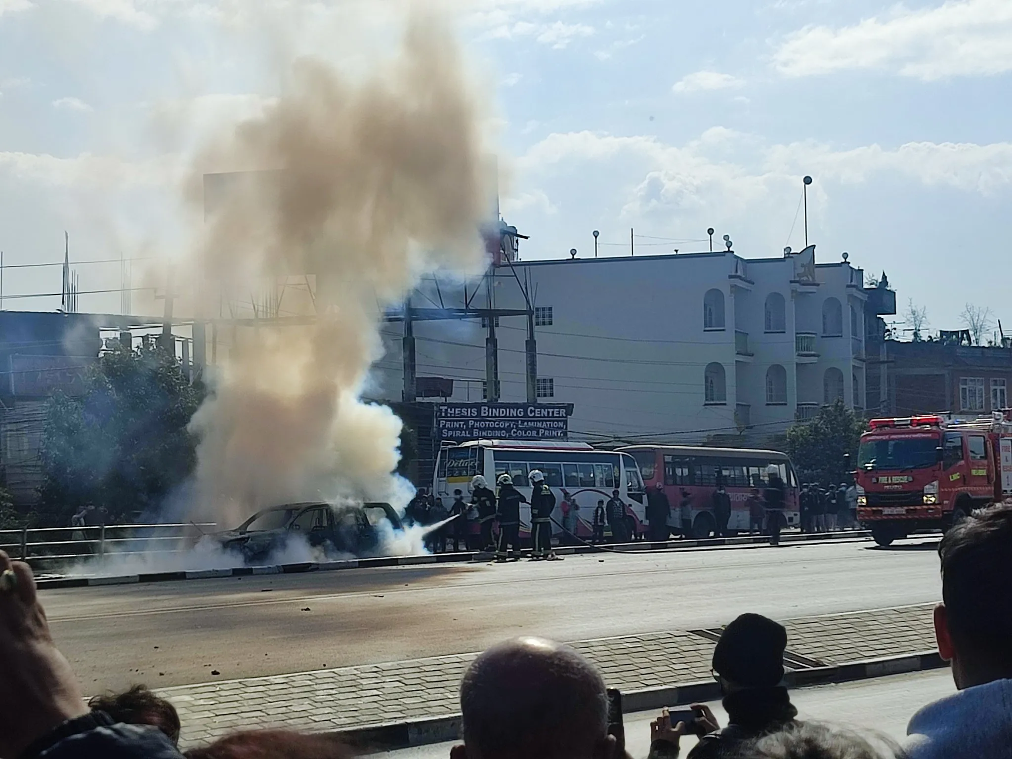 प्रदर्शनकारीले भौतिक पूर्वाधार तथा यातायातमन्त्री प्रकाश ज्वाला चढेको गाडीमा आगजनी गरेका थिए ।