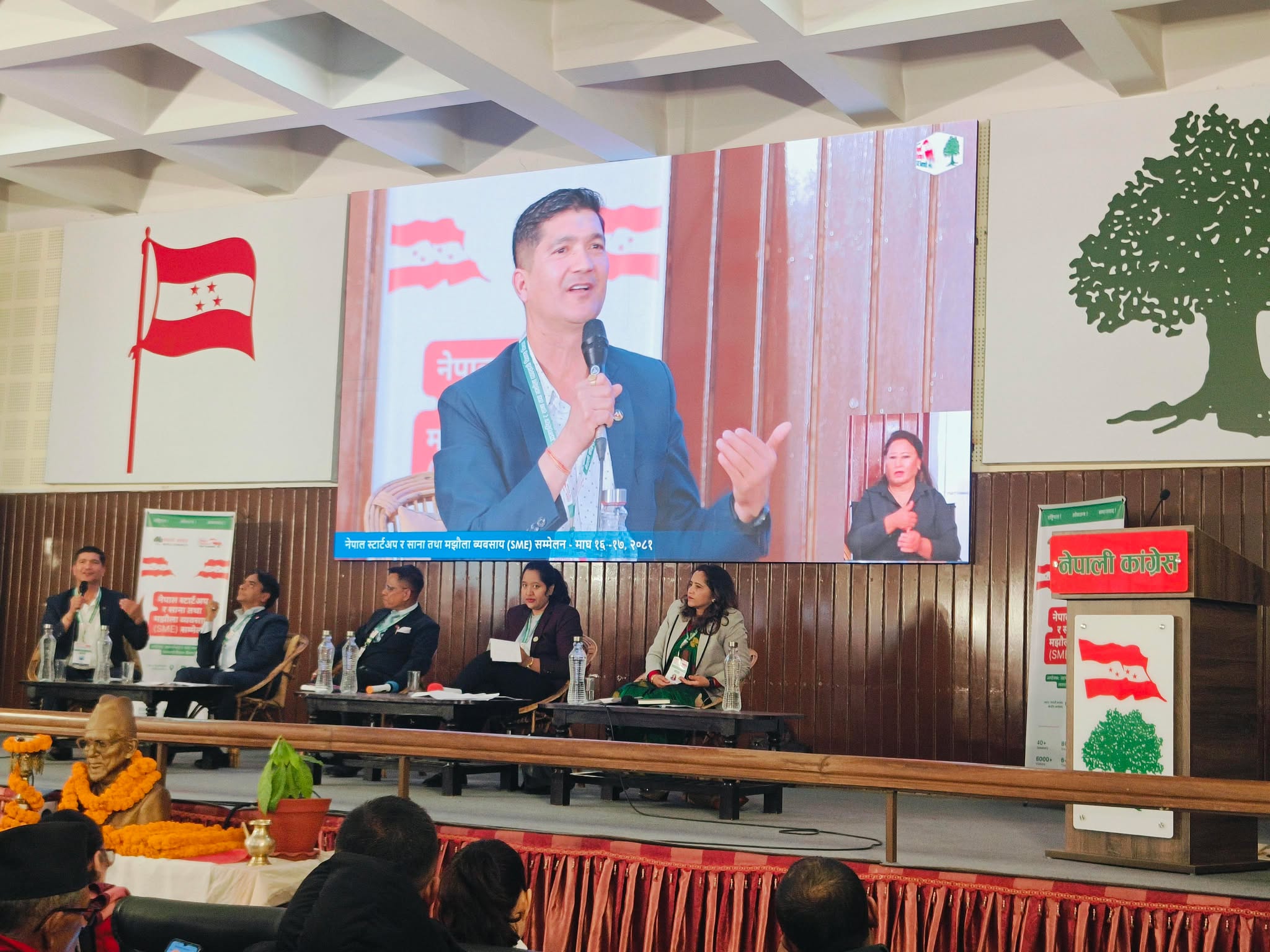 नेपाली कांग्रेसको उद्यमशील र साना तथा मझौला व्यवसायी विकास विभागले पार्टी कार्यालयमा बुधबारदेखि सुरु गरेको स्टार्टअप तथा एसएमई सम्मेलनको तेस्रो सेसनमा बोल्ने वक्ताहरुले नेपाललाई कृषिमा आत्मनिर्भर बनाउनुपर्नेमा जोड दिएका छन् ।