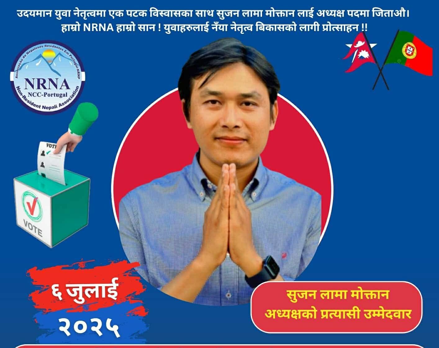 लिस्बन । गैर आवासीय नेपाली संघ (एनआरएनए) पोर्चुगलको आगामी नयां नेतृत्वका लागि सुजन लामाले अध्यक्ष...