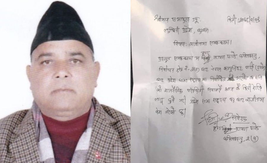 कपिलबस्तु । नेकपा एमालेका लुम्बिनी प्रदेशसभा सदस्य दृग नारायण पाण्डेले राजीनामा दिएका छन् । कपिलबस्तु...